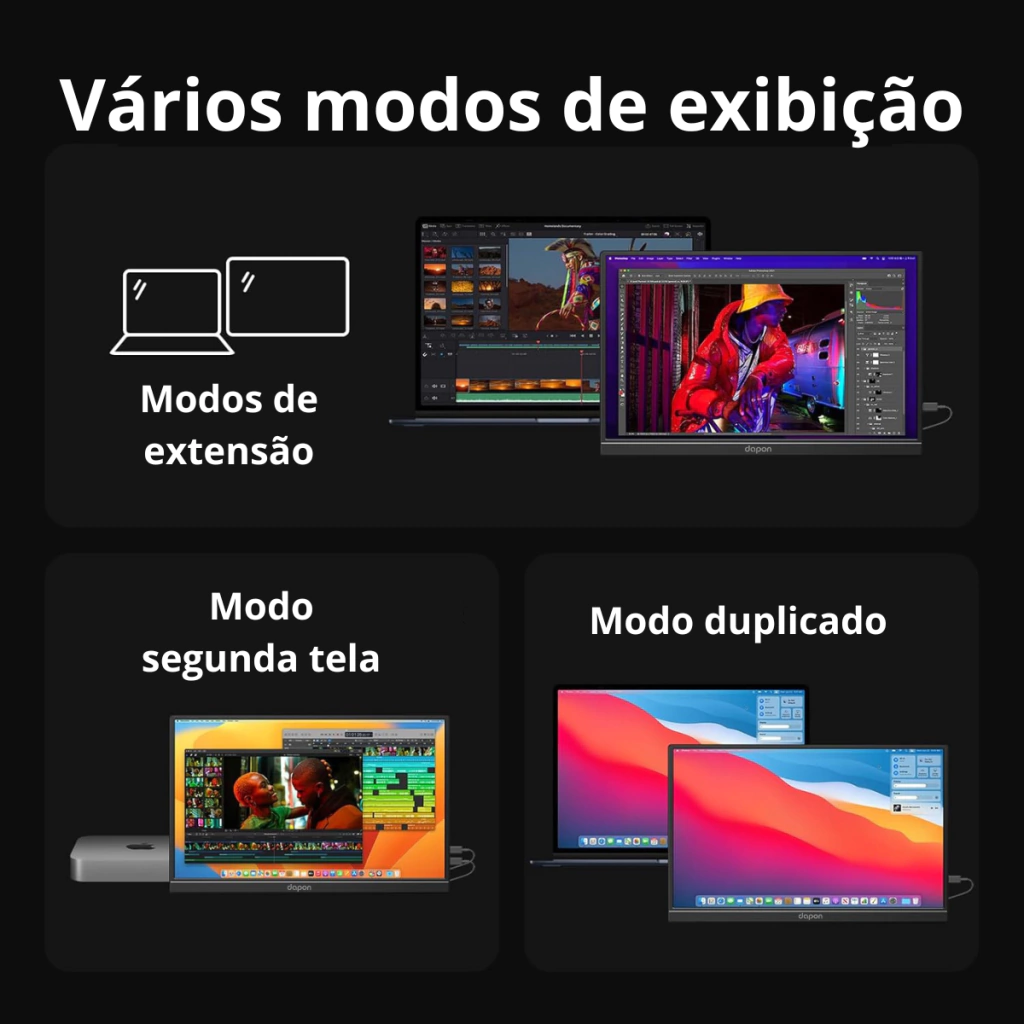 Aproveite a mobilidade e produtividade com o Monitor Portátil Dapon 15,6". Ideal para quem busca qualidade de imagem e praticidade em um único dispositivo.
